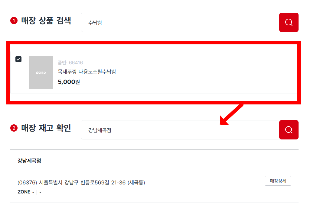 특정 매장에서 다이소 재고조회 방법