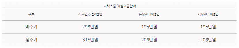 - 상품가 : 2,980,000원부터(디럭스룸 2인 기준)