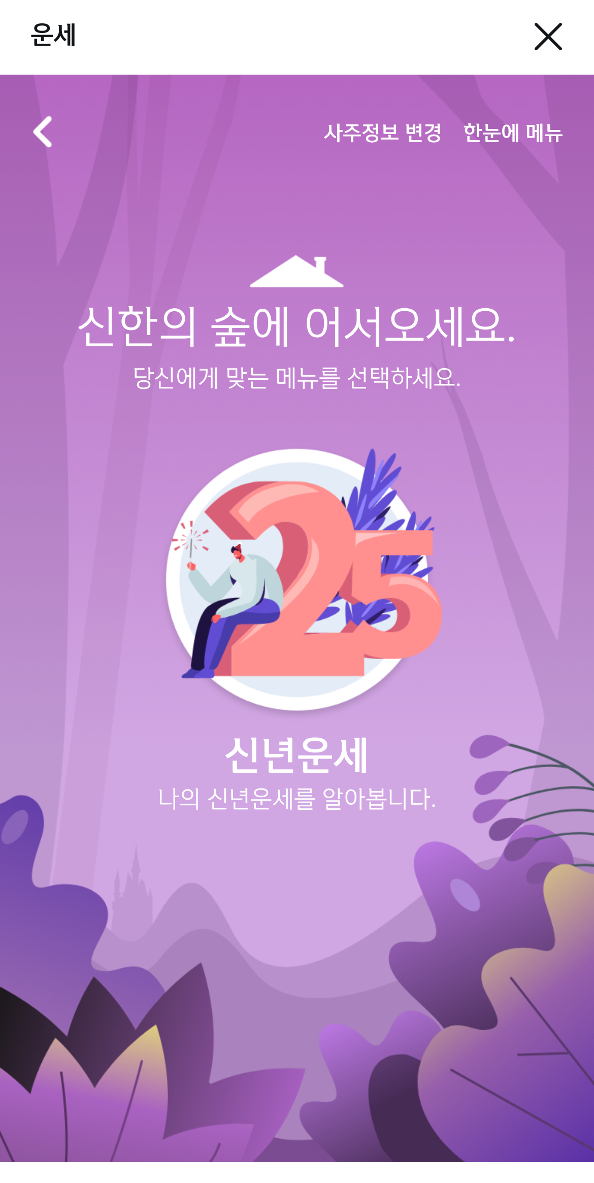 ① 신한SOL 어플 실행 후 [운세] 클릭 혹은 메뉴 검색 창에 [운세] 검색
