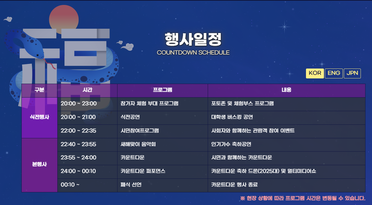 한 해를 보내고 새로운 한 해를 맞이하는 순간을시민들과 함께 나눕니다