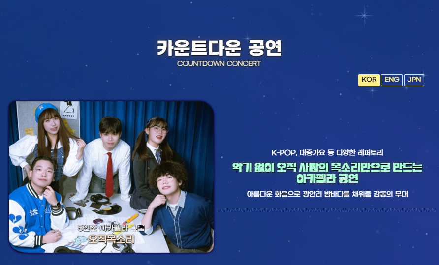 아카펠라 공연 - 21:25 ~ 22:55(30')