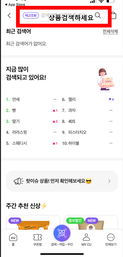 CU 편의점 온라인 재고 조회하기